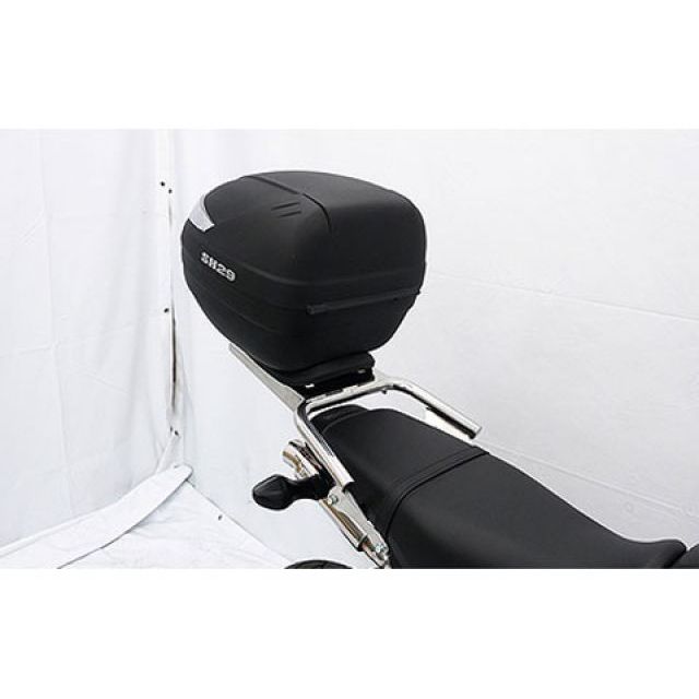 SHAD(シャッド) 製リアボックス【SH29】(サイズ:380mm(L) x 400mm(W) x 300mm(H)・本体重量:約2.6kg・容量:29L)を装備したタンデムバーです。