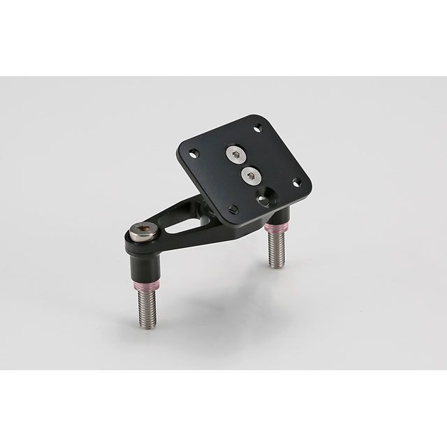 ハンドルブラケットに高剛性のアルミ削り出しステーを共締めして取り付けます。センターの位置にすることにより視認性を重視しています。専用台座がヒンジ仕様の可動式のため、ナビ画面の角度を見やすい位置に調節できます。専用台座自体の取付穴位置を変更することで、ナビ画面の位置も調節できます。