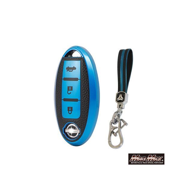 マッドマックス 日産専用 レザー調 TYPE A 3ボタン式 TPUソフト スマートキーケース(ブルー) MADMAX