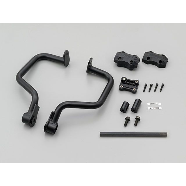 ボルトオン装着可能なφ25.4スチールパイプ製の強固なエンジンガード。立ちゴケ等の軽度な転倒に対し、エンジンやカウルのダメージを軽減します。φ25.4のパイプはアメリカンのハンドルと同径なので、アクションカメラなどハンドルにクランプする用品の装着も可能。