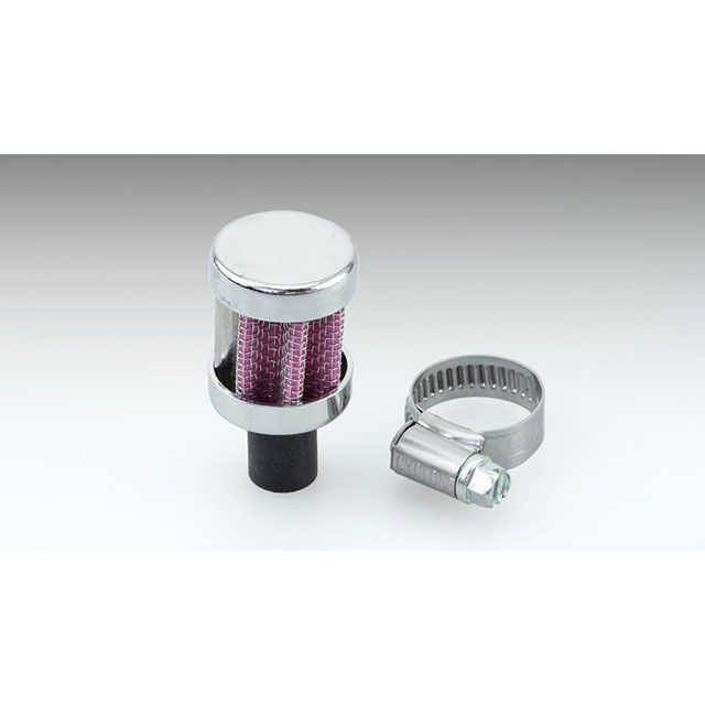 ブリーザーホースのエンドに装着して、オイルなどが飛び散るのを軽減するブリーザーフィルターです。