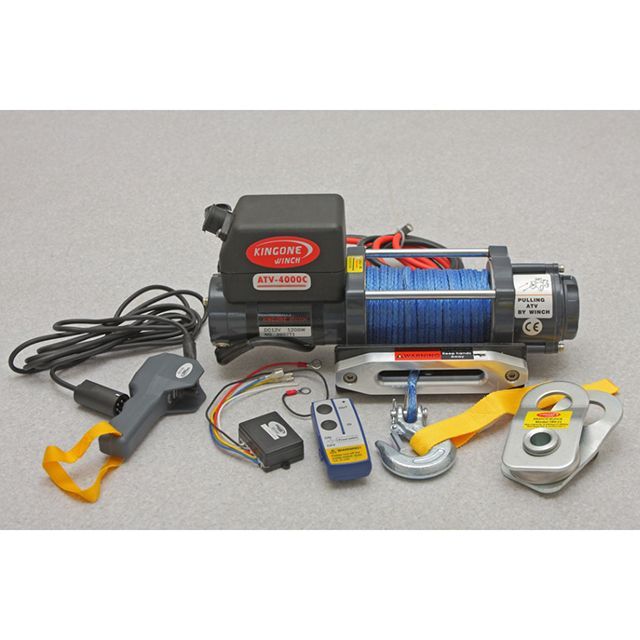 JA11 JB23他のジムニークラスの車両にマッチングする キングワンウインチ4000ポンド(1814kg)仕様です。汎用品ですので、ウインチベット等はございません。搭載にあたっては別途車両毎の加工が必要です。主要な諸元及び付属品 最大牽引力 1814 kg / 4000 lb モータ 12V/ 1.6 馬力 リモコン 3.0m(有線)ワイヤレスリモートコントロール(無線)ギヤートレイン 三段式 ギヤー比 187:1 フリースプール回転式リングギヤークラッチ ドラムサイズ 59mm X 131.5mm シンセティックロープサイズ φ5.5mm x 15.2m アルミフェアリード 5トンスナッチブロック ウインチ重量:13.8Kgs(ロープ等を含む)ご注文後の取り寄せ商品です。納品まで数日必要ですのでご了承ください。
