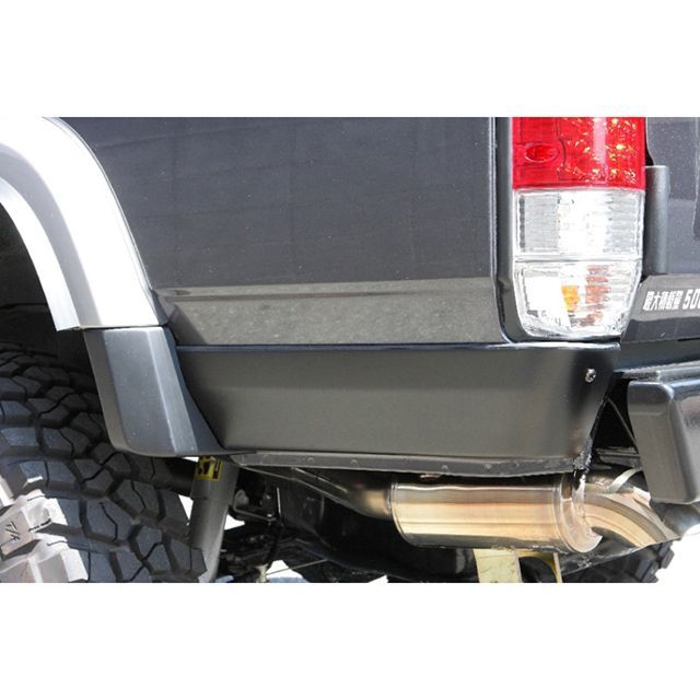 純正リアバンパーを取り外した際、みっともない状態になってしまう、ビス穴隠しやオーバーフェンダーエンドの左右セット4分割1台分です。ランクル70バン及びランクル70プラドのオーバーフェンダー付き4ドア車全車に装着可能なFRP製です。ブラックゲルコート仕上げで、塗装を前提とした仕上げです。写真はGRJ76への取り付け例でつや消しブラックに塗装済みです。4X4エンジニアリング製。受注後の取り寄せ商品です。納期がかかる場合がありますので、お急ぎの場合は先に納期をご確認ください。
