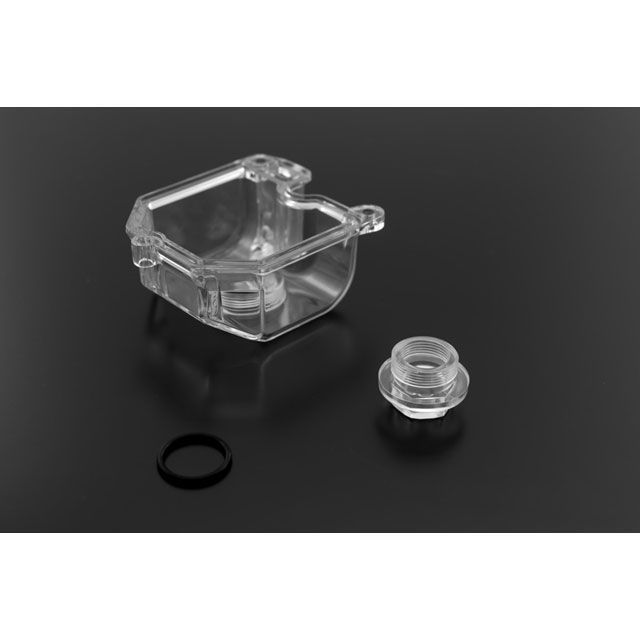 試行を重ね、辿り着いた高い透明度のスケルトンチャンバーボディは、フロート室のガソリン油面はもちろん、タンク内で発生した錆や塵なども目視で確認できます。
