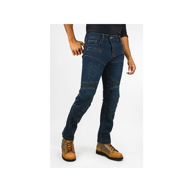 シャーリングによる動きやすさとスリムさを兼ね備えた高強度繊維ケブラージーンズ。