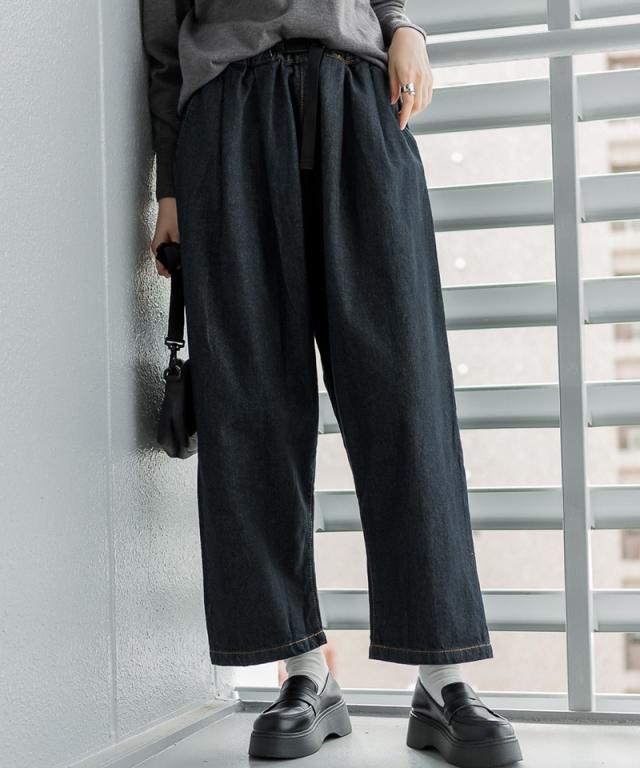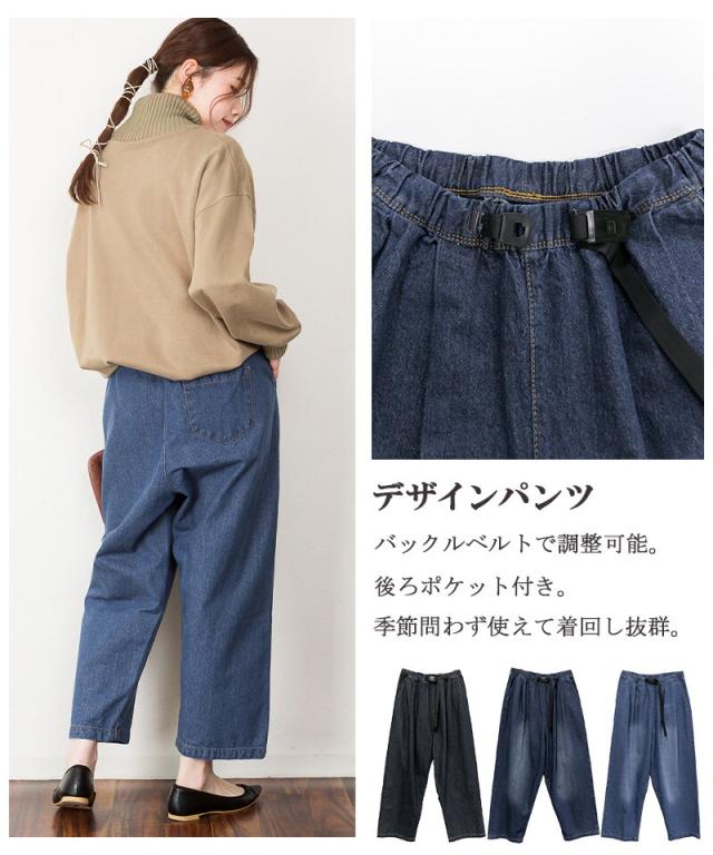 前バックルバルーンデニムパンツ