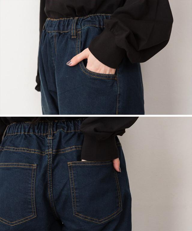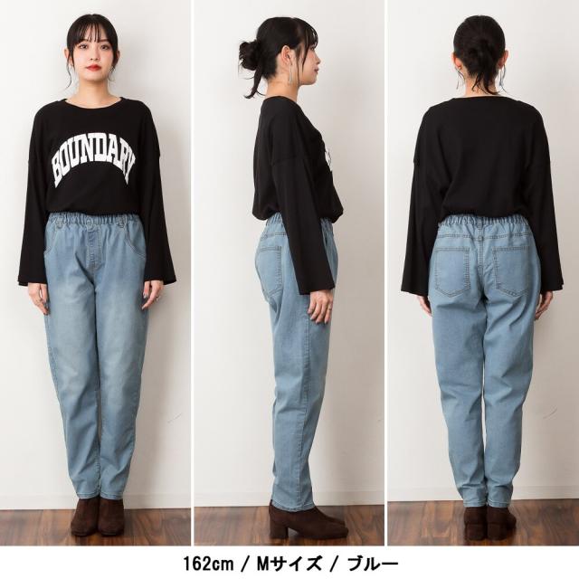 ウエストゴムテーパードデニムパンツ