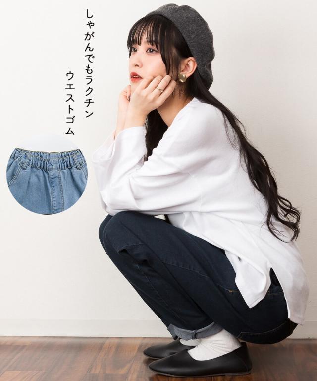 しゃがんでもらくちんなウエストゴム仕様。