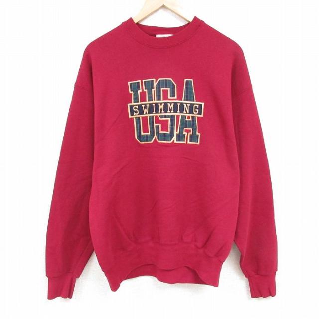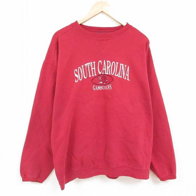 古着 長袖 スウェット メンズ 00年代 00s サウスカロライナ 刺繍 大きいサイズ クルーネック エンジ XLサイズ 中古 スエット 中古 古着