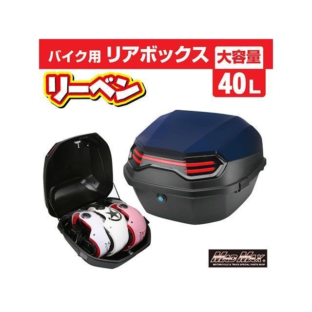 マッドマックス 汎用 バイク用 リアボックス リーベン トップケース 40L/軽量 防水 防塵(ネイビー) MADMAX