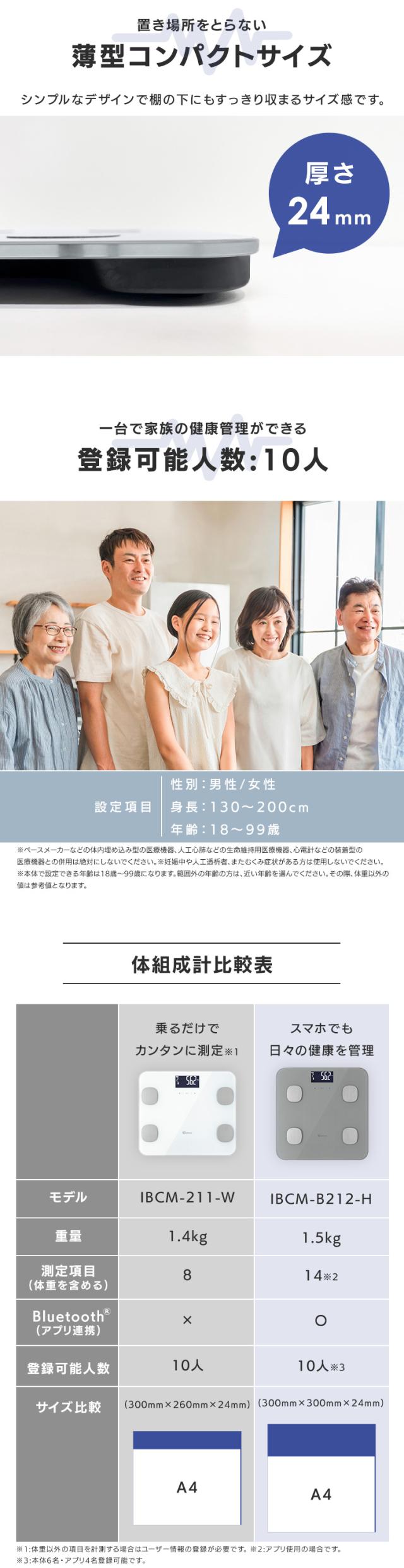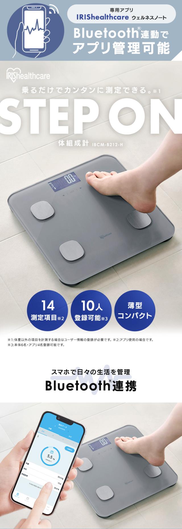 体重計 体組成計 スマホ 連動 体組成計 アイリスオーヤマ グレー IBCM-B212-H 薄型 Bluetooth スマホ連携 スマホ 連携 体重 体脂肪率 内臓脂肪 筋肉率 基礎代謝量 骨量 体脂肪 ダイエット ヘルスメーター 多機能 送料無料