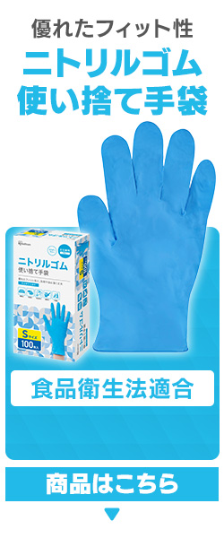 ニトリル手袋 使い捨て 100枚入 ニトリルグローブ ゴム手袋 ニトリルゴム手袋 作業用 薄手 食品衛生法適合 キッチン 調理 料理 介護 使い捨て手袋 ニトリル パウダーフリー 左右兼用 アイリスオーヤマ S M L RNBR-100S RNBR-100M RNBR-100L *