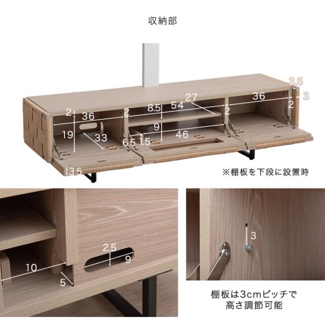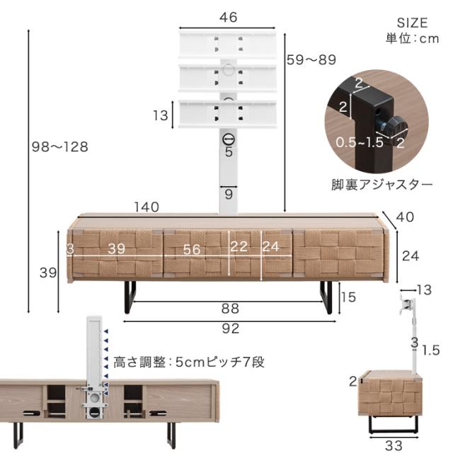 当店オリジナル! おしゃれなペーパーコード TVボード スタンド付 140 上下/左右 首振り 32〜65インチ対応 高さ調節 テレビラック テレビ台 TVボード テレビスタンド キャビネット