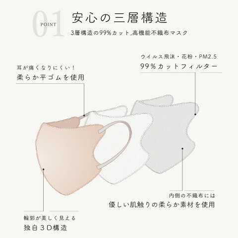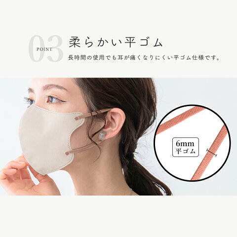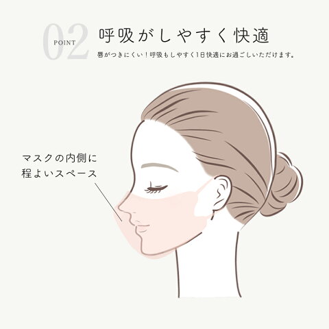 マスクの中に程よい空間ができるので、呼吸しやすく、長時間つけていても快適に過ごすことができます。