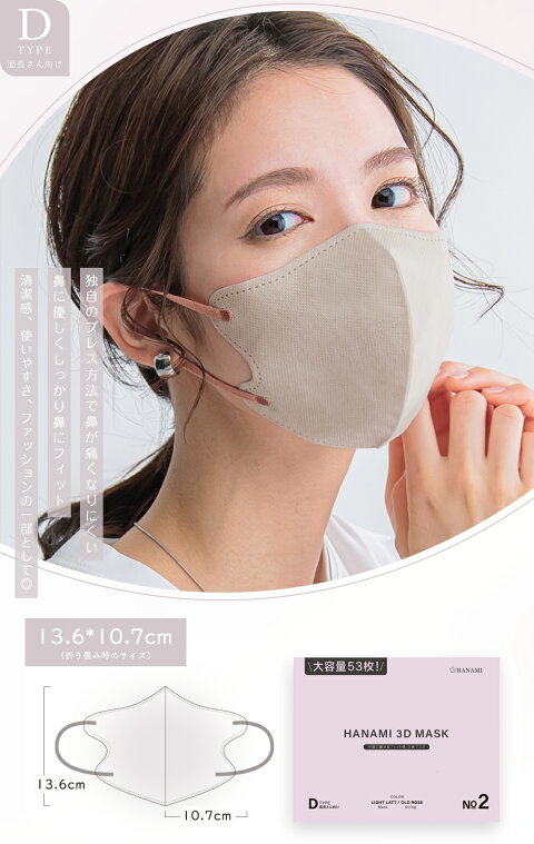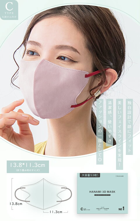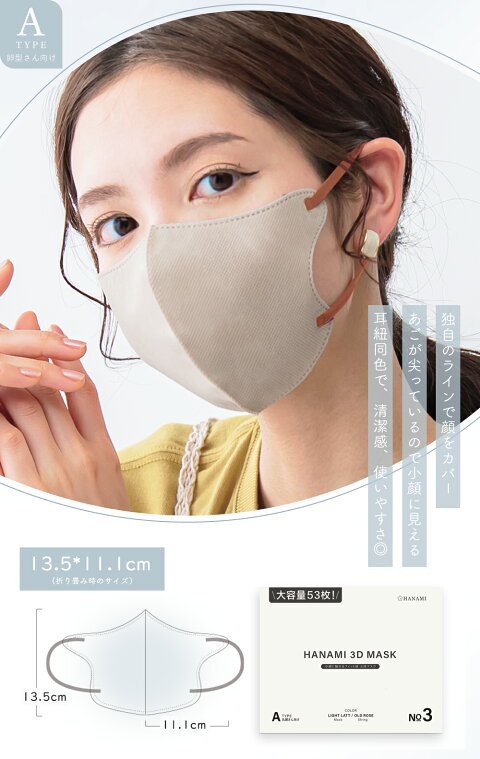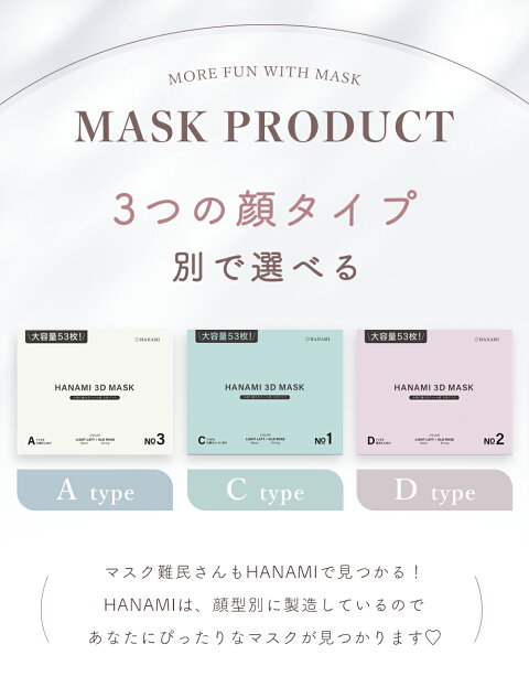 マスク 立体 不織布 53枚 バイカラー 3Dマスク おしゃれ 不織布マスク 立体マスク カラーマスク バイカラーマスク 小顔 丸顔 面長 柔らかい 通気性 HANAMI 冬の乾燥対策