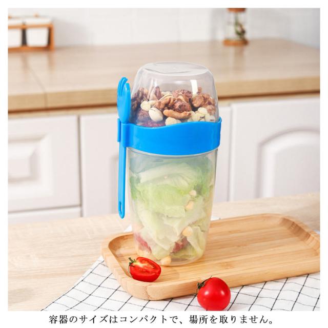 | 容器はボトル型で、持ち運びに非常に便利です。サラダ、フルーツ、スナック、牛乳などに使用できます。 ソースカップとフォークが付属しています。 容器の上部にはドレッシングを入れるカップが付いています。 容器は安心して使用できる素材で作られています。 フタを閉めると、シェイクしてドレッシングを混ぜることができます。 容器はお弁当袋に入れやすいサイズです。 ピクニックや外出先での使用に最適です。 便利でスタイリッシュなデザインです。 手で持ちやすい形状です。 お弁当箱としても使用できます。 カバンに入れて持ち運ぶことができます。 容器のサイズはコンパクトで、場所を取りません。 | |