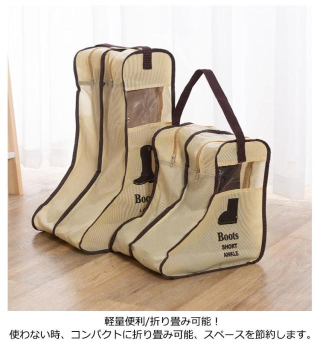 マルチ収納ケース コンパクト 収納 立体 透明窓 窓付き ショートブーツ ブーツ収納カバー ロングブーツ 持ち手付き 靴収納 防塵 シューズバッグ 透明 3個セット!ブーツ 折りたたみ 軽量 ケース パッキング 収納袋 旅行 出張