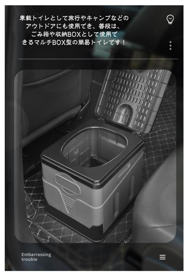 | 【非常用】【簡易トイレ】【折り畳み】 ポータブルでサイズがちょうどです。PPエコプラスチックを使用、防水できます。組み立てと折畳みは超簡単です。 気持ちよく坐れます。蓋は匂いの拡散問題をうまく解決しました。 折り畳んだサイズが小さくて、押し入れの隙間や車のトランクに収納可能、省スペースです。 自宅でもお出かけでも、大人も、お年寄りや子どもも使用可能です。 プラスチック製でまるごと丸洗いができるので、つねに清潔な状態をキープできます。 車載トイレとして旅行やキャンプなどのアウトドアにも使用でき、普段は、ごみ箱や収納BOXとして使用できるマルチBOX型の簡易トイレです! | |