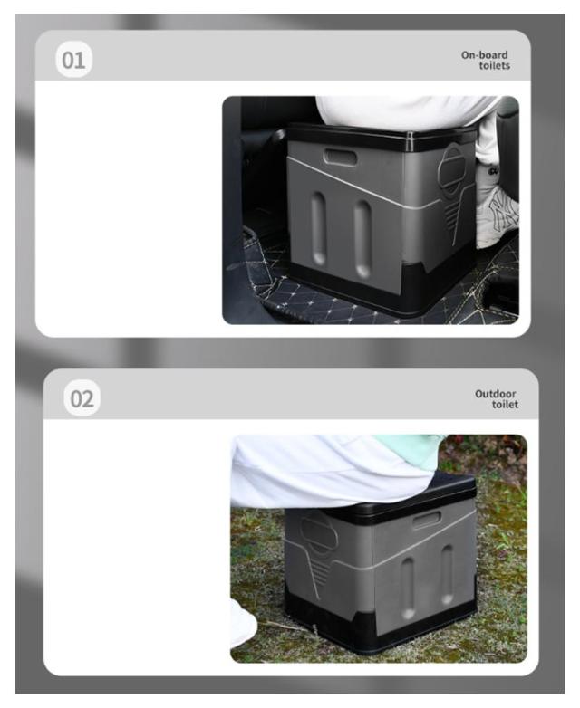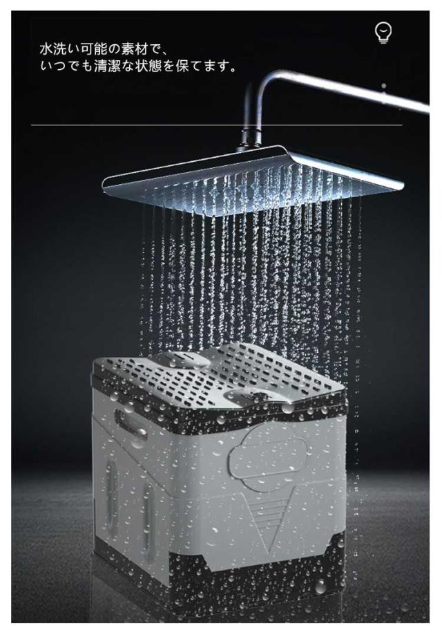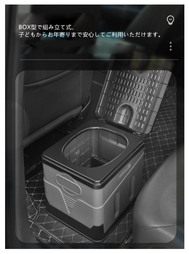 | 折りたたみ式の非常用トイレ、災害や車中泊、登山、アウトドア、キャンプ等、様々なシーンで大活躍! 椅子、ゴミ箱、ドリンクコンテナ、収納箱としても使えます。 BOX型で組み立て式、子どもからお年寄りまで安心してご利用いただけます。 水洗い可能の素材で、いつでも清潔な状態を保てます。 | |