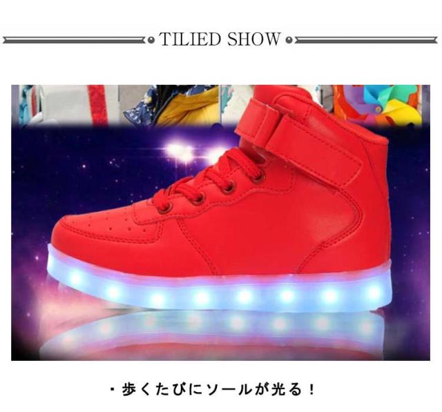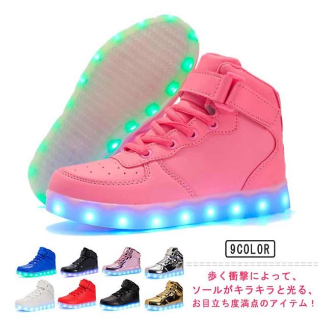 スニーカー 光る靴 キッズ 子供靴 光る ハイカット 光る靴 メンズ レディース USB充電式 フラッシュシューズ ダンスシューズ 男の子 女の子 歩きやすい 軽量 滑り止め