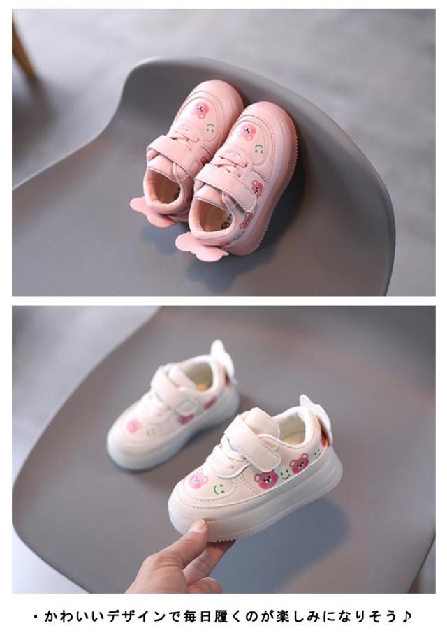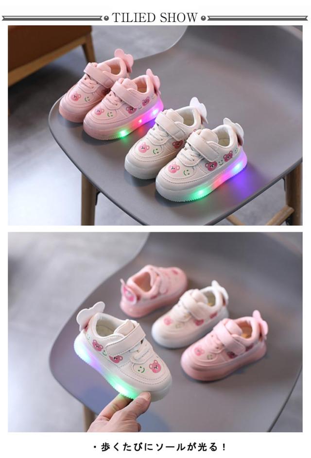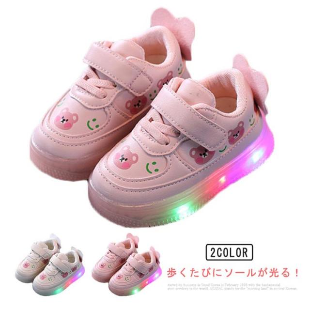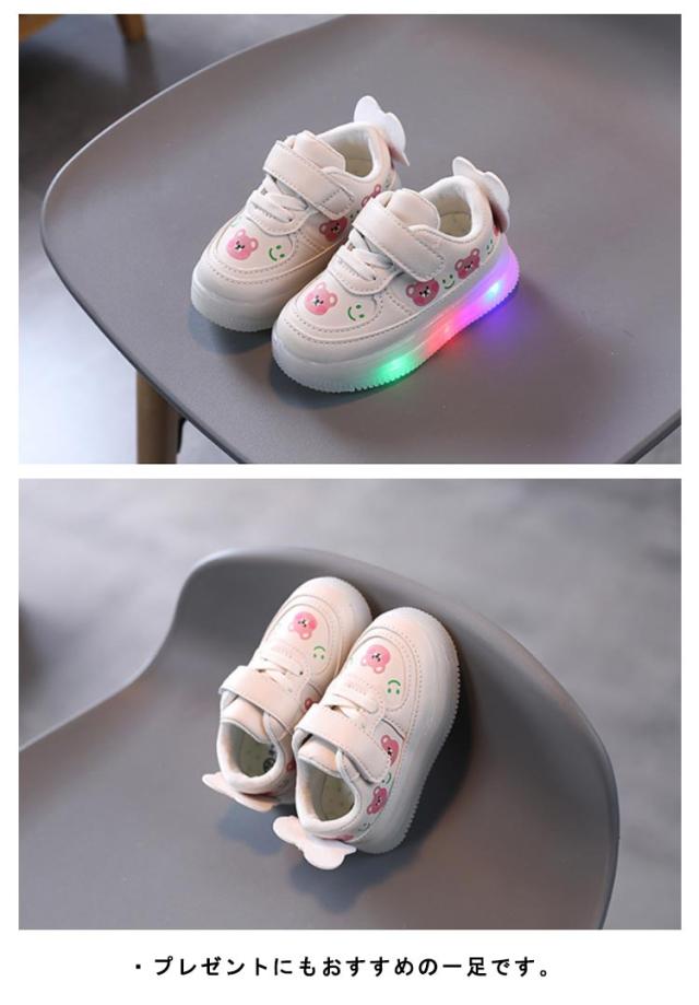 フラッシュシューズ ベビー 光る靴 歩きやすい キッズ 熊 女の子 スニーカー クマ 女児 キッズシューズ かわいい 光る靴 軽量 滑り止め カジュアル