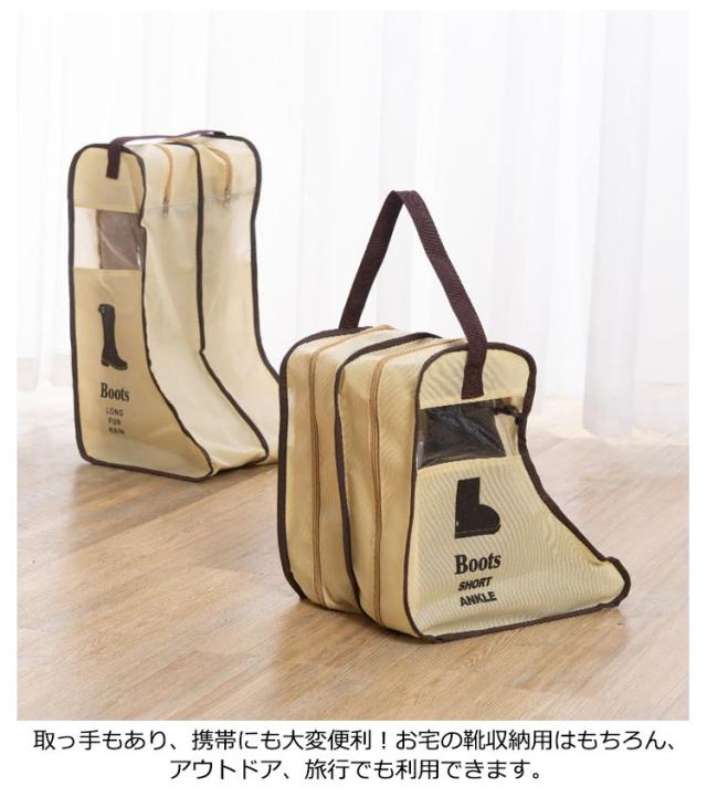 透明窓 3個セット!ブーツ シューズバッグ 靴収納 ブーツ収納カバー 収納 ロングブーツ ショートブーツ ケース 持ち手付き 立体 防塵 折りたたみ 透明 窓付き マルチ収納ケース 3個セット!ブーツ コンパクト パッキング 収納袋 旅行 出張