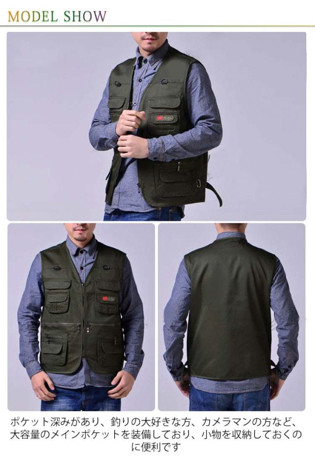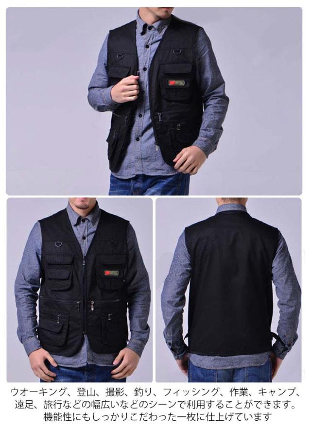 | 撮影、釣り、キャンプは勿論、旅行や休日も気軽に着用できるアウトドアベストです ポケット深みがあり、釣りの大好きな方、カメラマンの方など、大容量のメインポケットを装備しており、小物を収納しておくのに便利です ウオーキング、登山、撮影、釣り、フィッシング、作業、キャンプ、遠足、旅行などの幅広いなどのシーンで利用することができます。機能性にもしっかりこだわった一枚に仕上げています | |