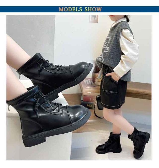 | 大人っぽくオシャレなデザインのジュニアブーツ。 本革のようなシワ感のある高級合成素材を使用します。 ファスナーがついていて脱ぎ履きしやすい 安定ソール。ソールはすべりにくく優れたゴムを採用します。 ガールズの可愛い皮靴。正式の場でも、普段でも! | |