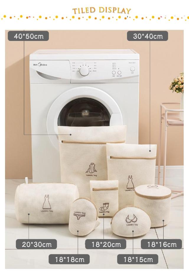 かわいい 洗濯ネット 形崩れ防止 旅行収納バッグ ランドリーネット ブラジャー用 ブラジャーネット 厚手 洗濯バッグ 7枚セット 細かいメッシュ シワ防止 ネットバッグ ウォッシュバッグ 大中小サイズ 収納ポーチ トラベルポーチ 7枚セット 円筒型 細かい網目 丈夫