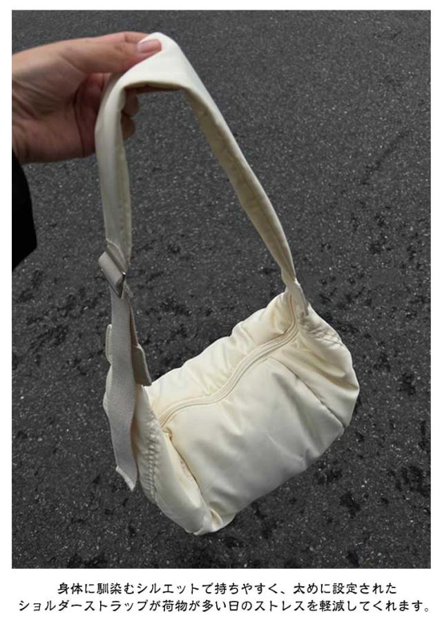 | かるいバッグ 身体に馴染むシルエットで持ちやすく、太めに設定されたショルダーストラップが荷物が多い日のストレスを軽減してくれます。 どんなコーディネートにも合わせやすいです。 太いストラップ!80mm幅広いストラップ、長い時間掛けても問題なし! | |