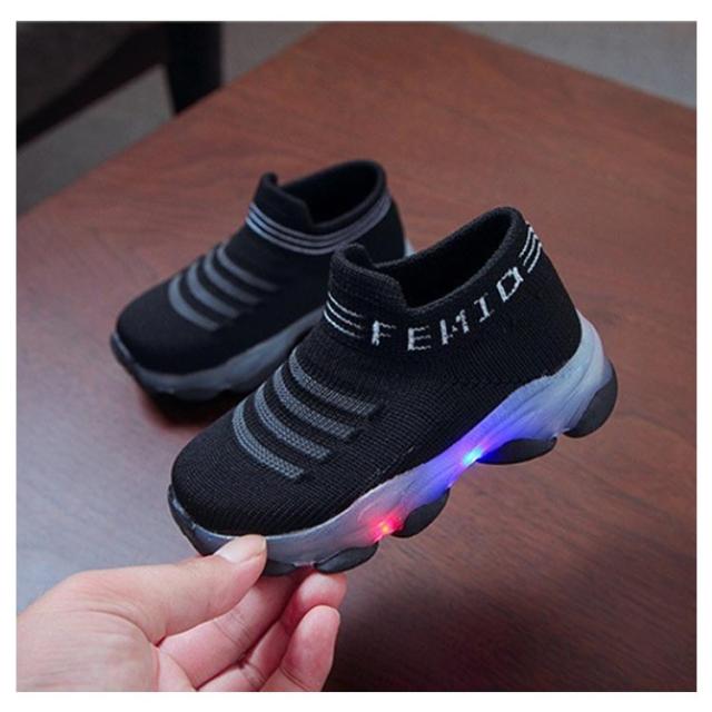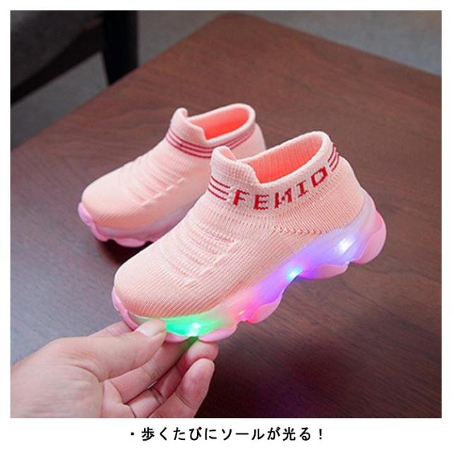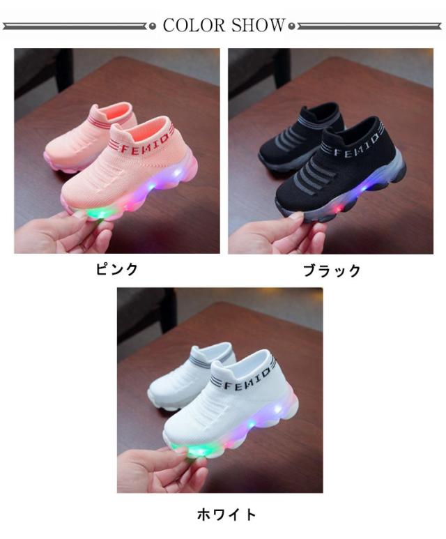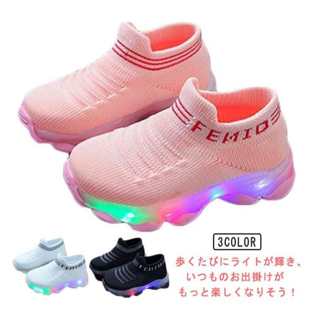 ベビー靴 光る靴 スリッポン キッズ 光る靴 子供 女の子 フラッシュシューズ スニーカー 光る フライニットスニーカー 紐なし 歩きやすい 軽量 滑り止め