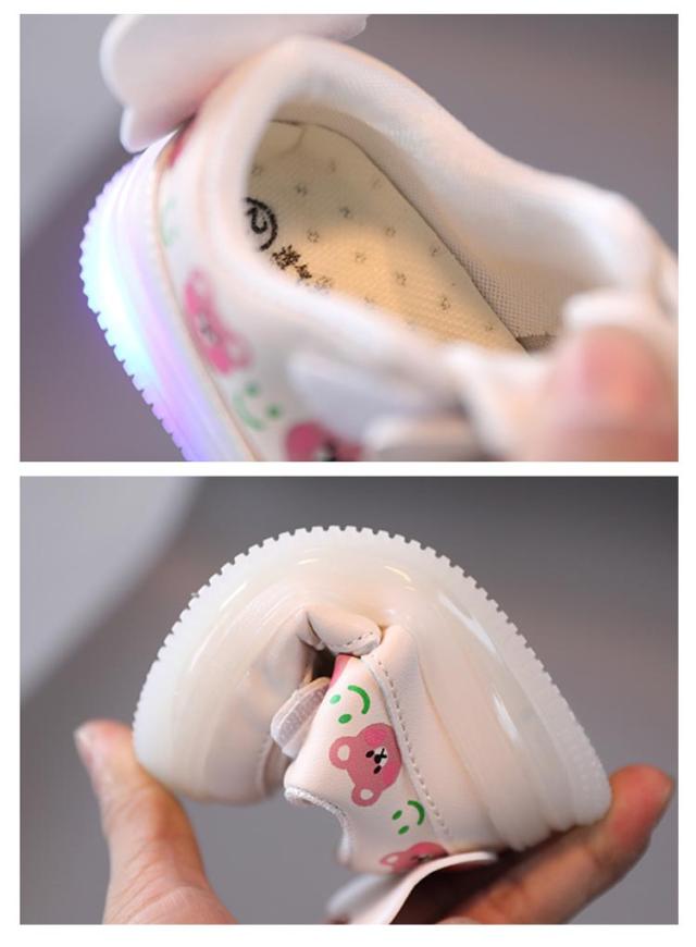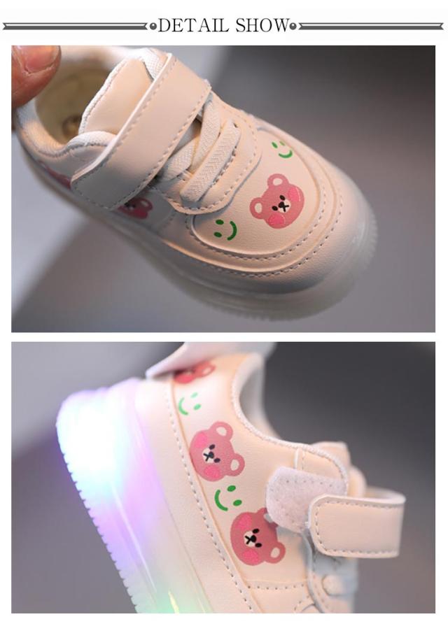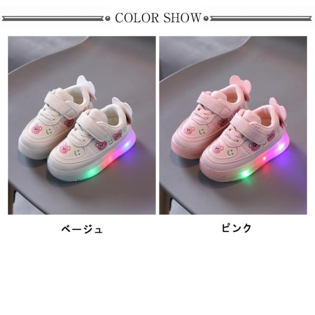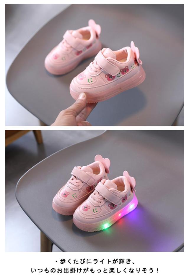 スニーカー クマ 光る靴 フラッシュシューズ 女の子 熊 ガールズ キッズ 光る靴 女児 キッズシューズ かわいい 歩きやすい 軽量 滑り止め カジュアル