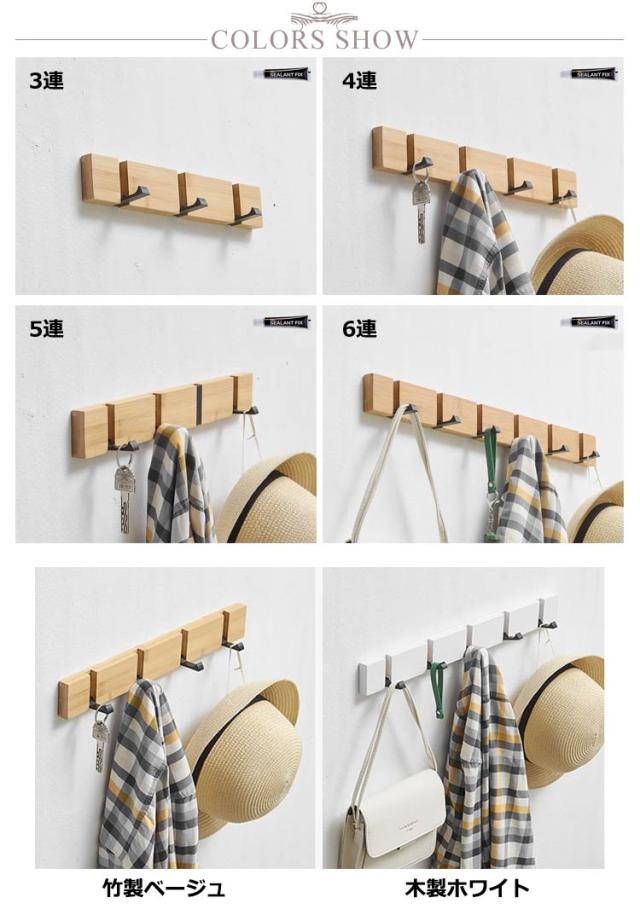 スーツ掛け 6連 コート掛け 木製 木製 ハンガーフック 壁掛けフック 3連 ウォールハンガー 5連 ナチュラル 90°回転式 4連 可動式 吊り下げ 帽子掛け 装飾 洋服掛け 壁掛けハンガー 玄関 スッキリ ウォールハンガー リビング トイレ おしゃれ 高級感 おしゃれ 収納