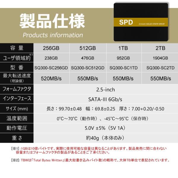保証期間:3年間(保証は、書き込み可能なデータの最大バイト数(TBW)または最初の購入日からの3年以内のいずれか早い方に基づきます。)