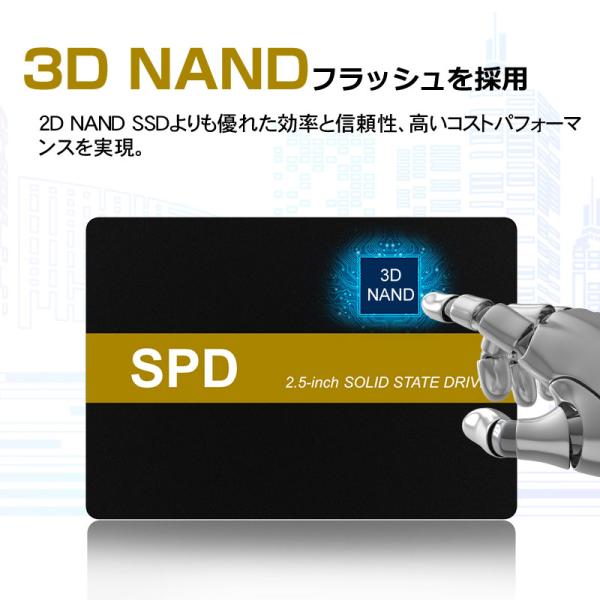 SPD SSD 256GB 2.5インチ 7mm 内蔵型SSD SATAIII 6Gb/s 520MB/s 3D NAND採用 堅牢・軽量なアルミ製筐体 国内3年保証 ネコポス送料無料