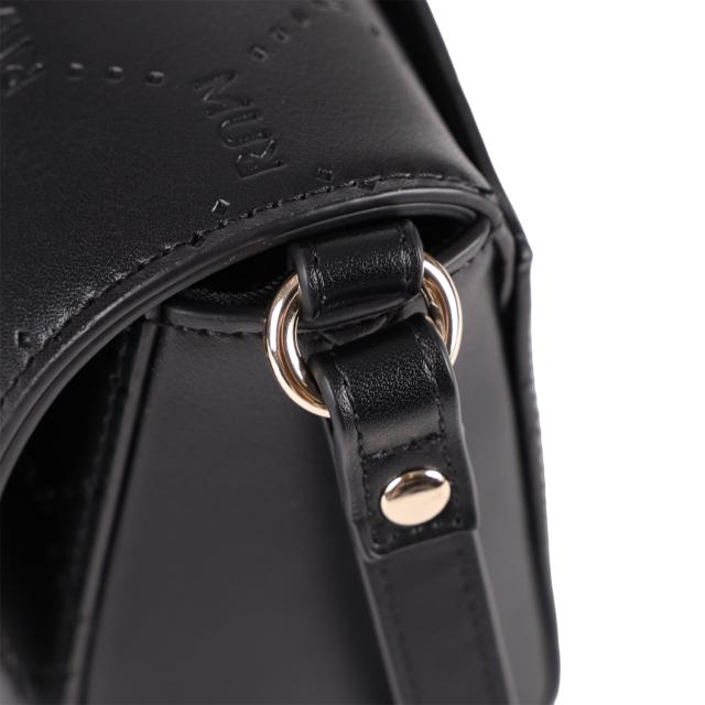 ムルーアのショルダーバッグ。MURのエンボスがおしゃれなシリーズです。ゴールドのロゴメタルがポイントで、ショルダーの長さを調節できるので幅広いシーンで活躍してくれそうなアイテムです。