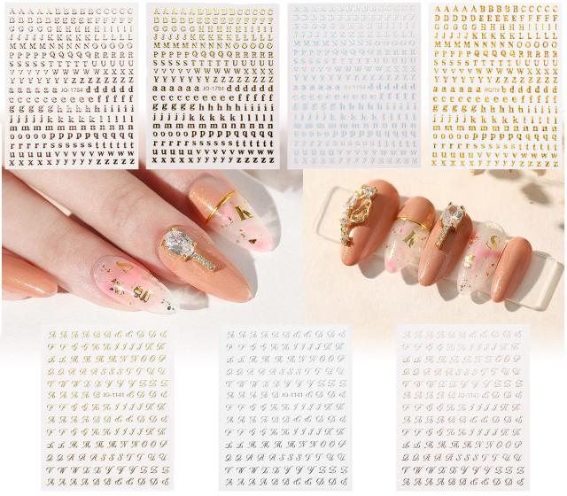 Chisafly ネイルシール アルファベット イニシャル 小さい ゴールド ブロック体 筆記体 2タイプ 7枚セット スクリプト体 シルバー キラキ