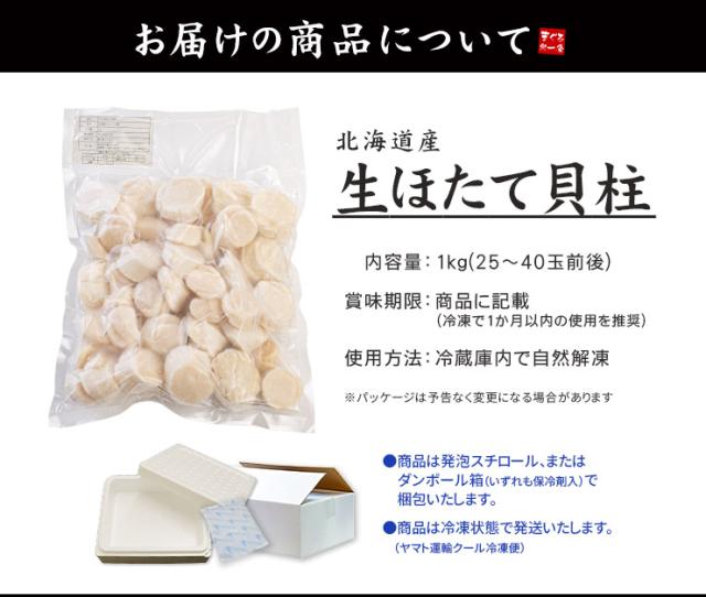 特大サイズ 北海道産 生ホタテ 貝柱 1kg 送料無料 [[特大ホタテ1kg]