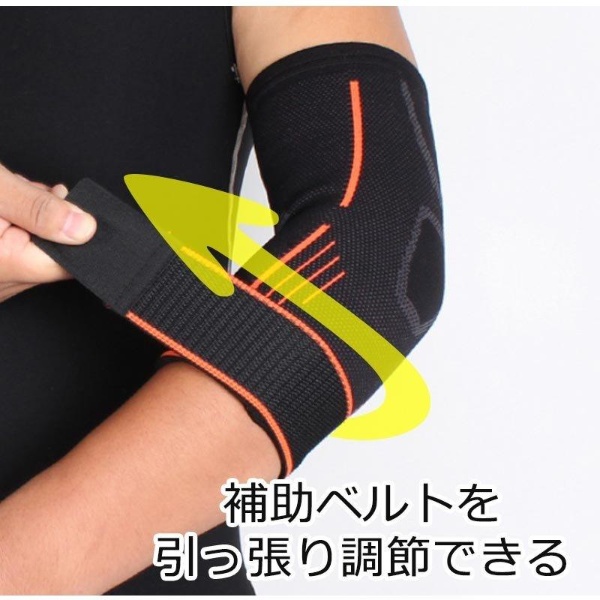・ブラック×オレンジラインのスタイリッシュでクールなデザインで、肘をしっかりサポートします。