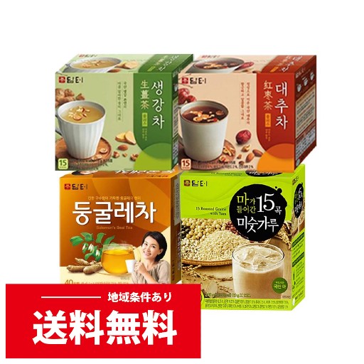 韓国お茶 ダムト 粉末茶 ティーバッグ茶 4種セット:生姜茶15gx15包、なつめ茶15gx15包、ミスカル20gx12包、ドゥングレ茶1.2gx40包(6079、6080、6194、6152)