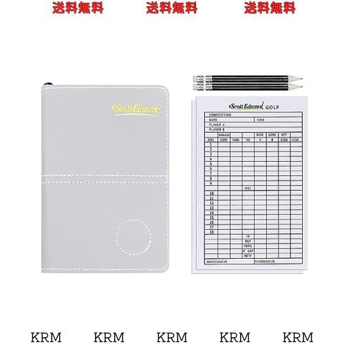 Scott Edward ゴルフ スコアカードカバー レザー スコアカードホルダー 統計とスコアトラッキング 防水 ソフト 厚手 ブラック グレー グ