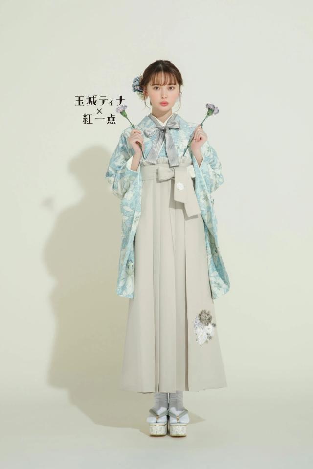 玉城ティナ×紅一点 二尺袖 着物 袴 レンタル フルセット和服 袴 モダン レトロ はかま【貸衣装 卒業式 大学生】【袴 Mサイズ】個性派 フェミニンクリーム ベージュ オフホワイト ブルー 水色【IN33】