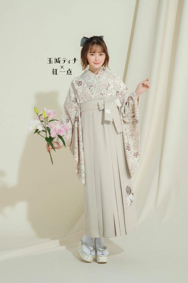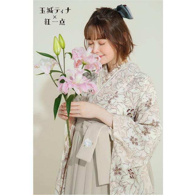 玉城ティナ×紅一点 二尺袖 着物 袴 レンタル フルセット和服 袴 モダン レトロ はかま【貸衣装 卒業式 大学生】【袴 Mサイズ】個性派 フェミニンクリーム ベージュ オフホワイト 【IN34】