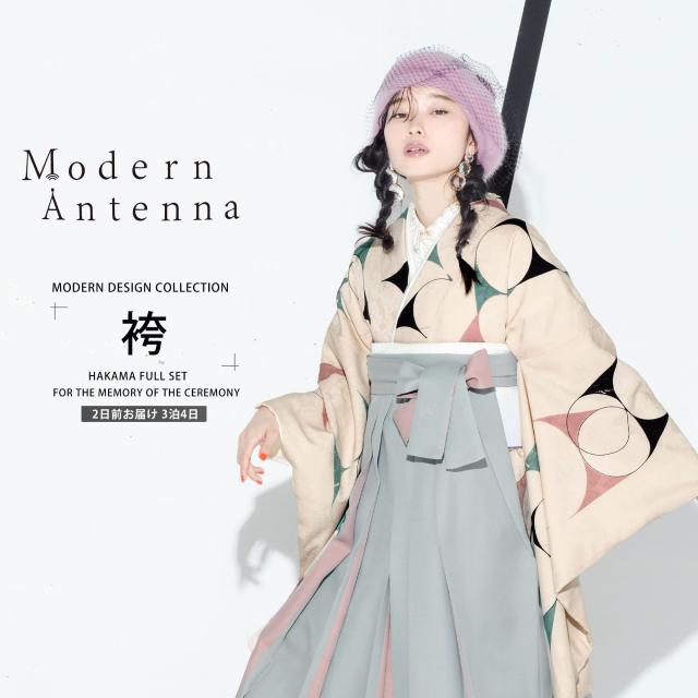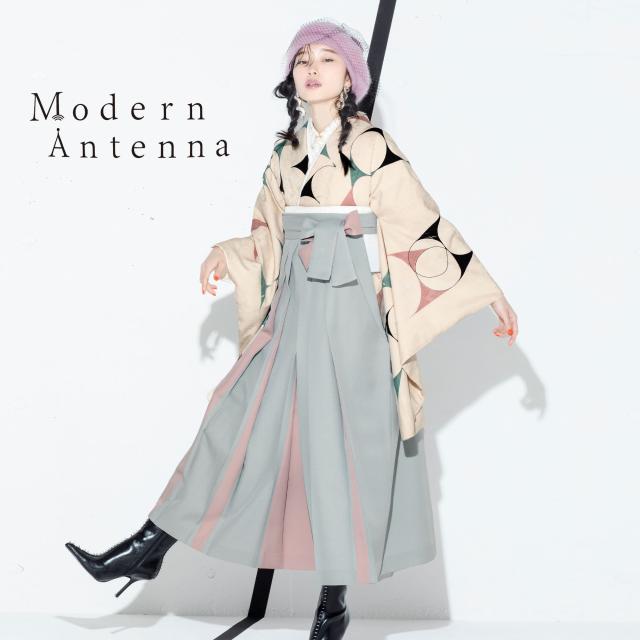 Modern Antenna モダンアンテナ 二尺袖 着物 袴 レンタル フルセット和服 袴 モダン レトロ はかま【貸衣装 卒業式 大学生】【袴 Mサイズ】刺繍 個性派 フェミニン ピンク グレー ツートン 斬新【MN36】