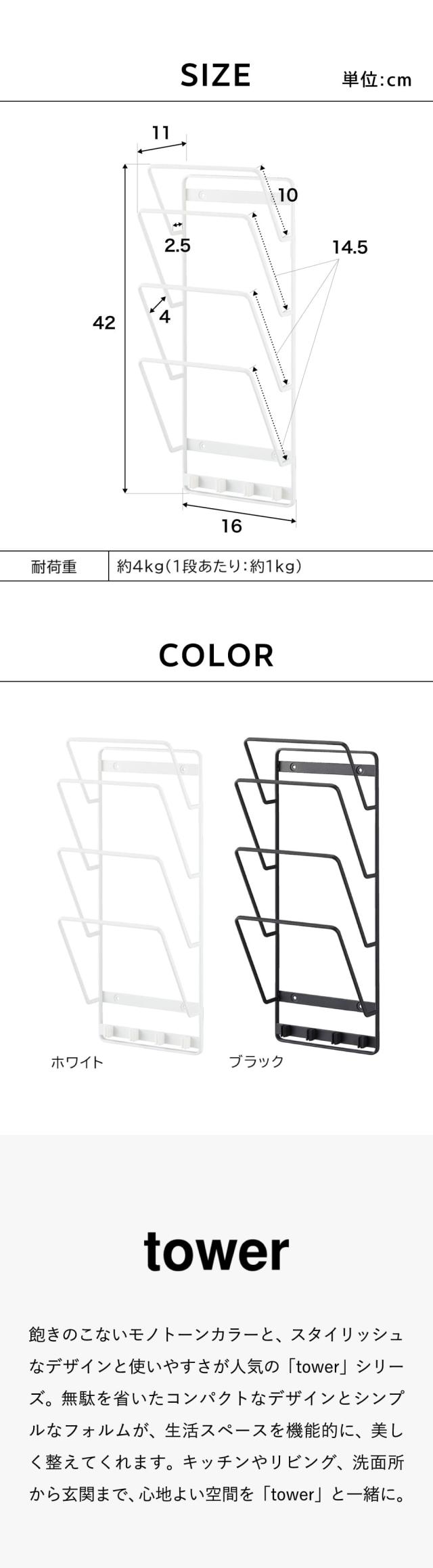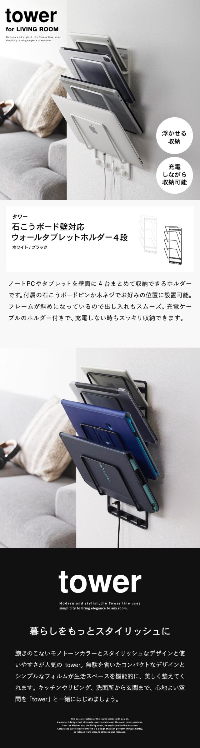 tower 山崎実業 石こうボード壁対応ウォールタブレットホルダー タワー 4段 収納 送料無料 1979 1980 ホワイト ブラック タブレット スタンド ブックスタンド ノートPC 学習用タブレット yamazaki タワーシリーズ