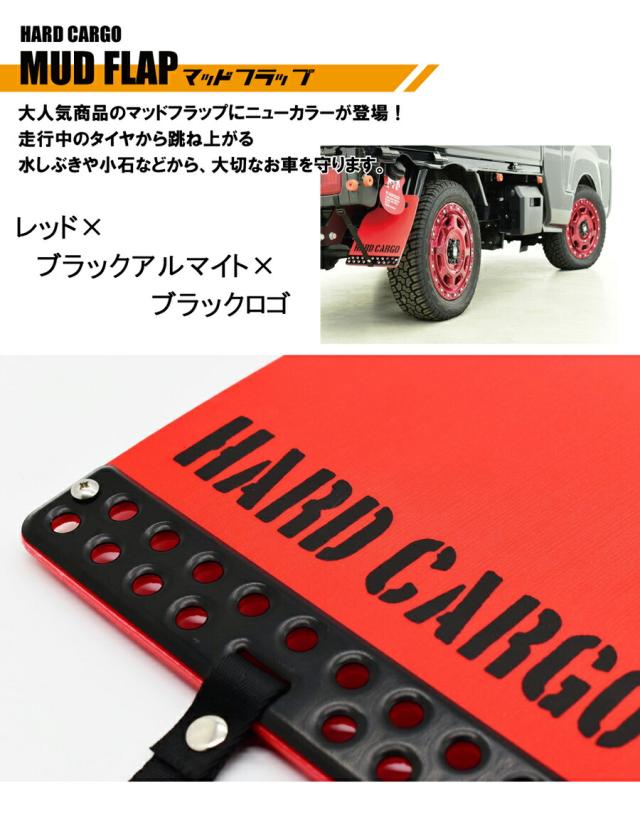 ハードカーゴ マッドフラップ 色レッド×ブラックロゴ 現行 全車種 マッドガード 泥除け リア左右セット 軽トラック用 カスタム パーツ HC-175