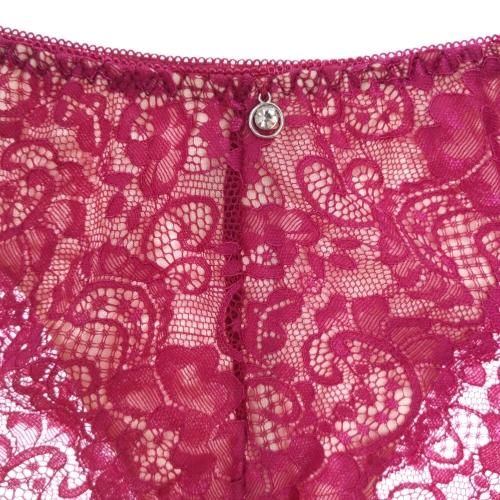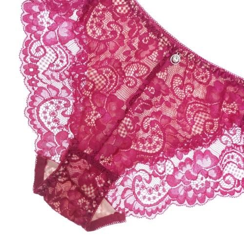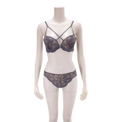 【グラシア】 ブラジャー ショーツ セット ブラセット ランジェリー 下着 チャーム クロス パッド ビジュー ふんわり レース 谷間 フルバック グレー ローズレッド
