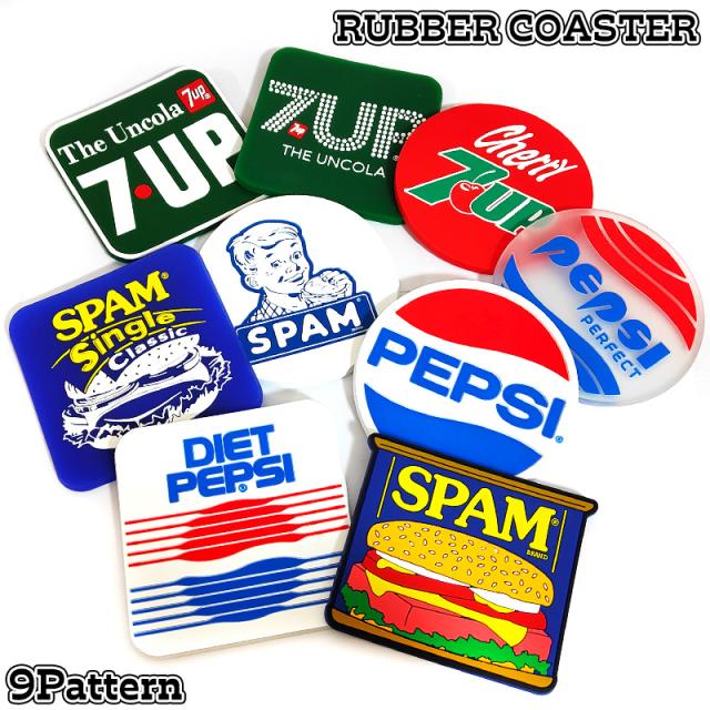 コースター ラバー アメリカン 雑貨 ペプシ SPAM 7UP ポップ PEPSI コーラ レトロ かわいい アンティーク グラスマット 可愛い