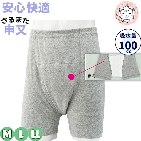 失禁甲又 安心快適パンツ 失禁 前開き 綿100% 抗菌 防臭 消臭 吸水量100cc M/L/LL | 男性用 失禁パンツ 尿漏れパンツ 吸水パンツ 前あき さるまた 猿股