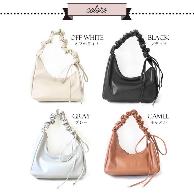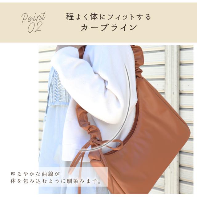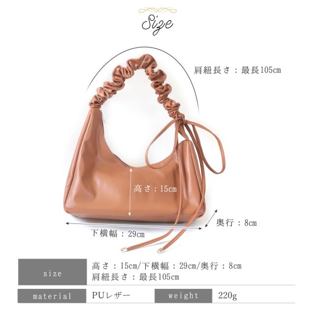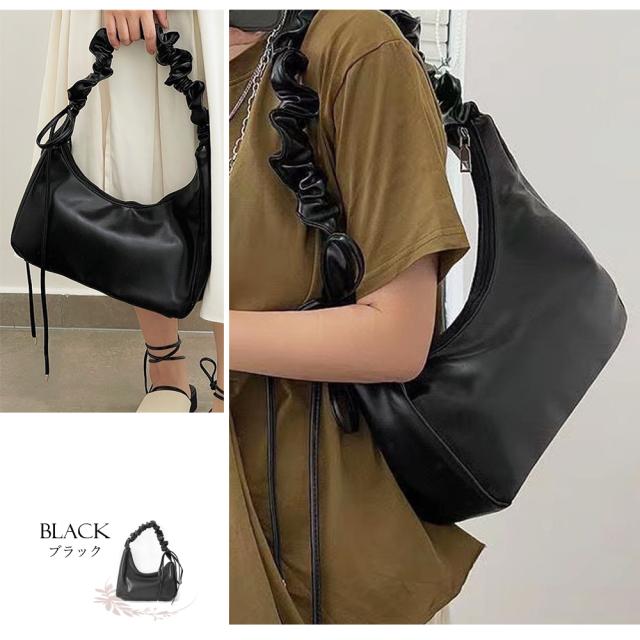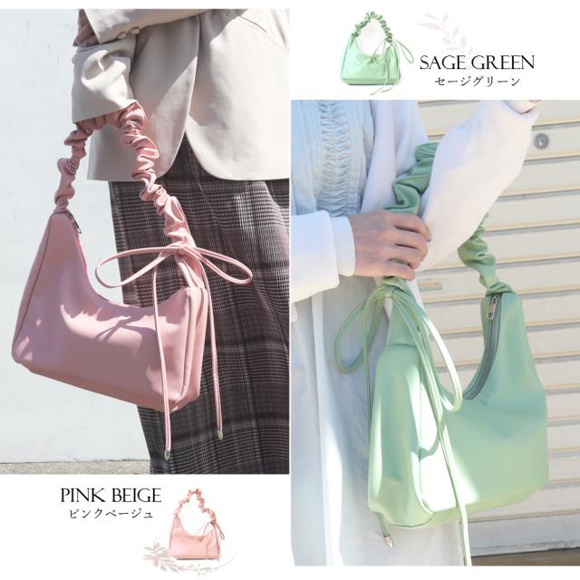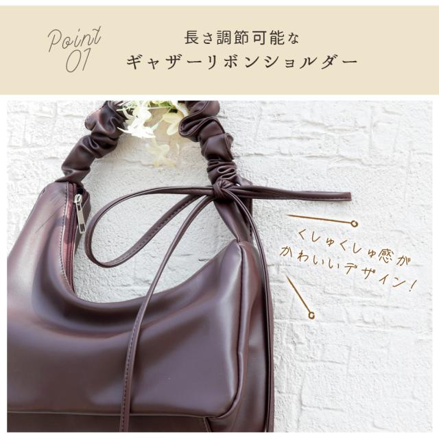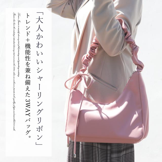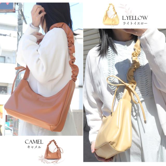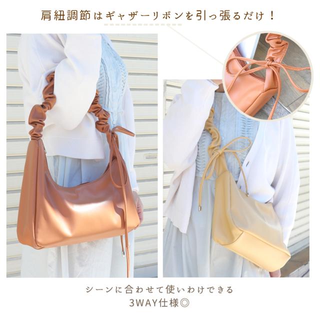 【3WAY/斜めがけ/軽量/シャーリングショルダーがかわいいホーボーバッグ】